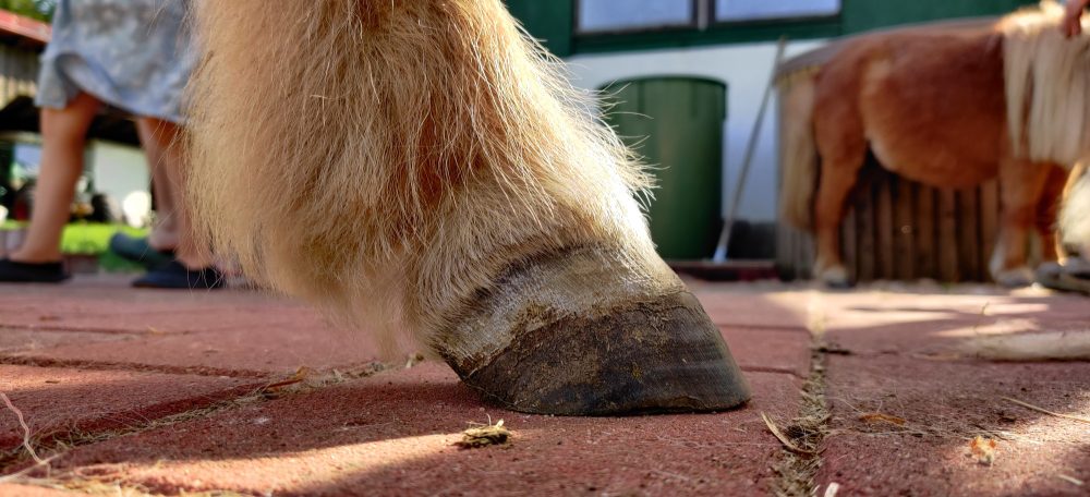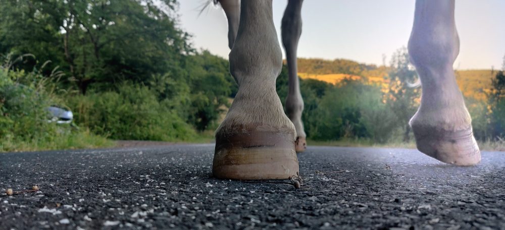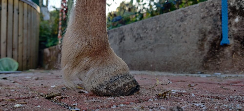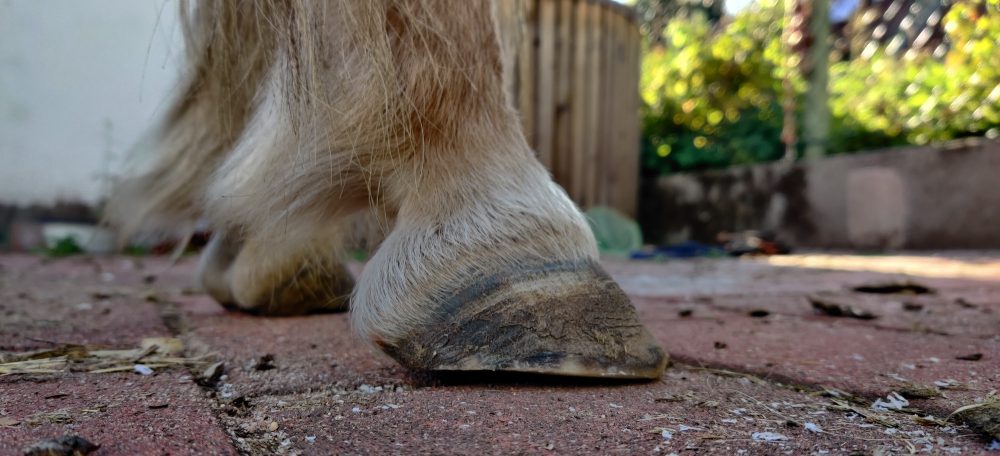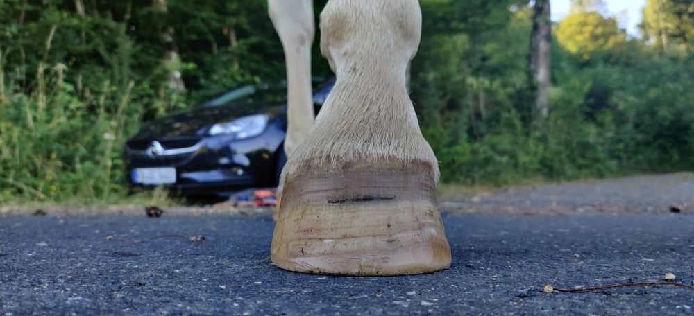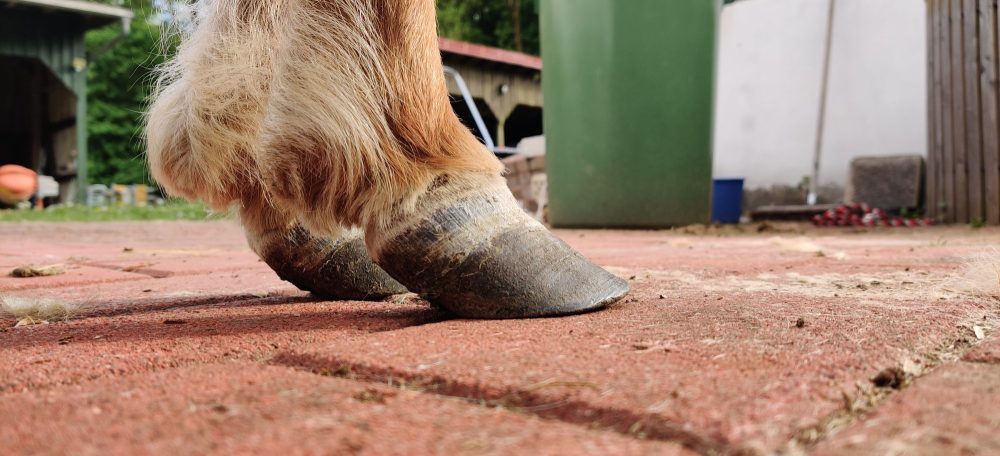 Unbalancierter Huf, mit schiefer Knochenstellung. Bild 2: 10 Minuten später- gerade Knochenstellung